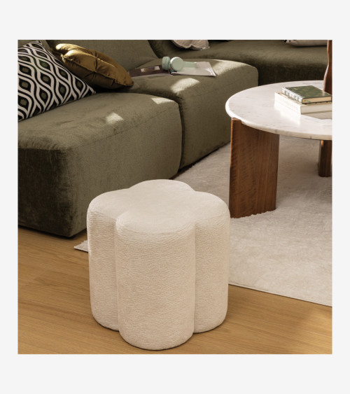 Pouf fleur chenille blanc