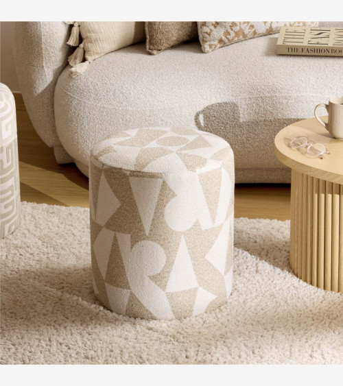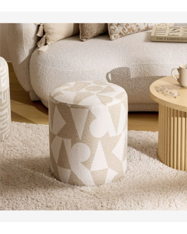 Le pouf est cylindrique avec un revêtement en polyester avec des motifs géométriques dans une couleur sobre. Son allure moderne conviendra parfaitement à un espace qui maîtrise le sens du détail. Très pratique, il vous permet d'avoir une assise supplémentaire à portée de main lorsque vous recevez.