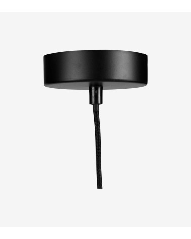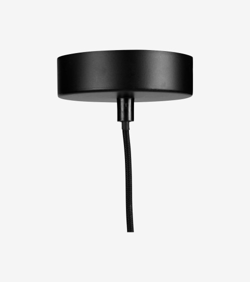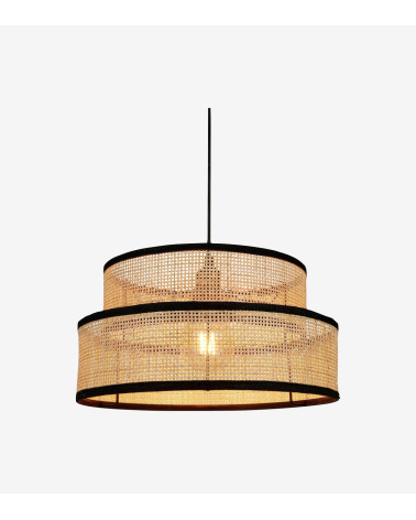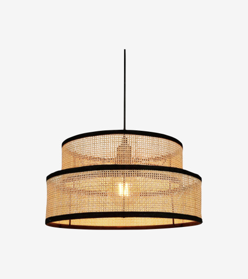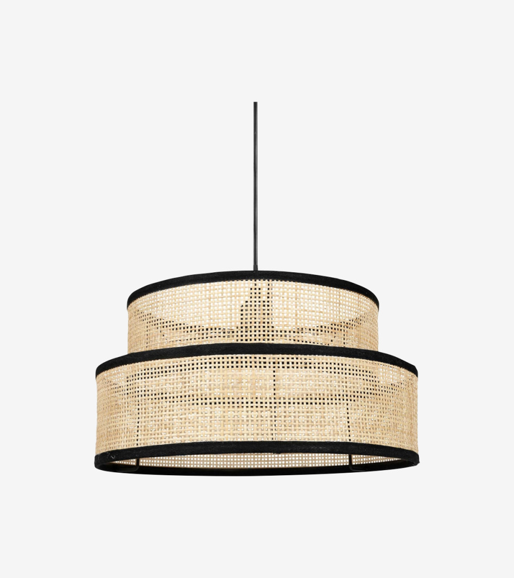 Suspension D35 cm gigogne ronde rotin et tissu noir - 2 abat-jour