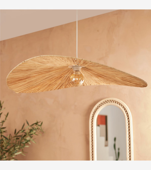 Cette suspension séduira les inconditionnels de matières naturelles ! Avec un design dans l'air du temps et un diamètre généreux, sa canopée en raphia est idéale pour éclairer une salle à manger ou une chambre à coucher d'une lumière chaleureuse.