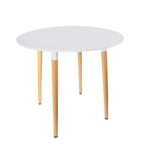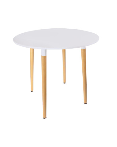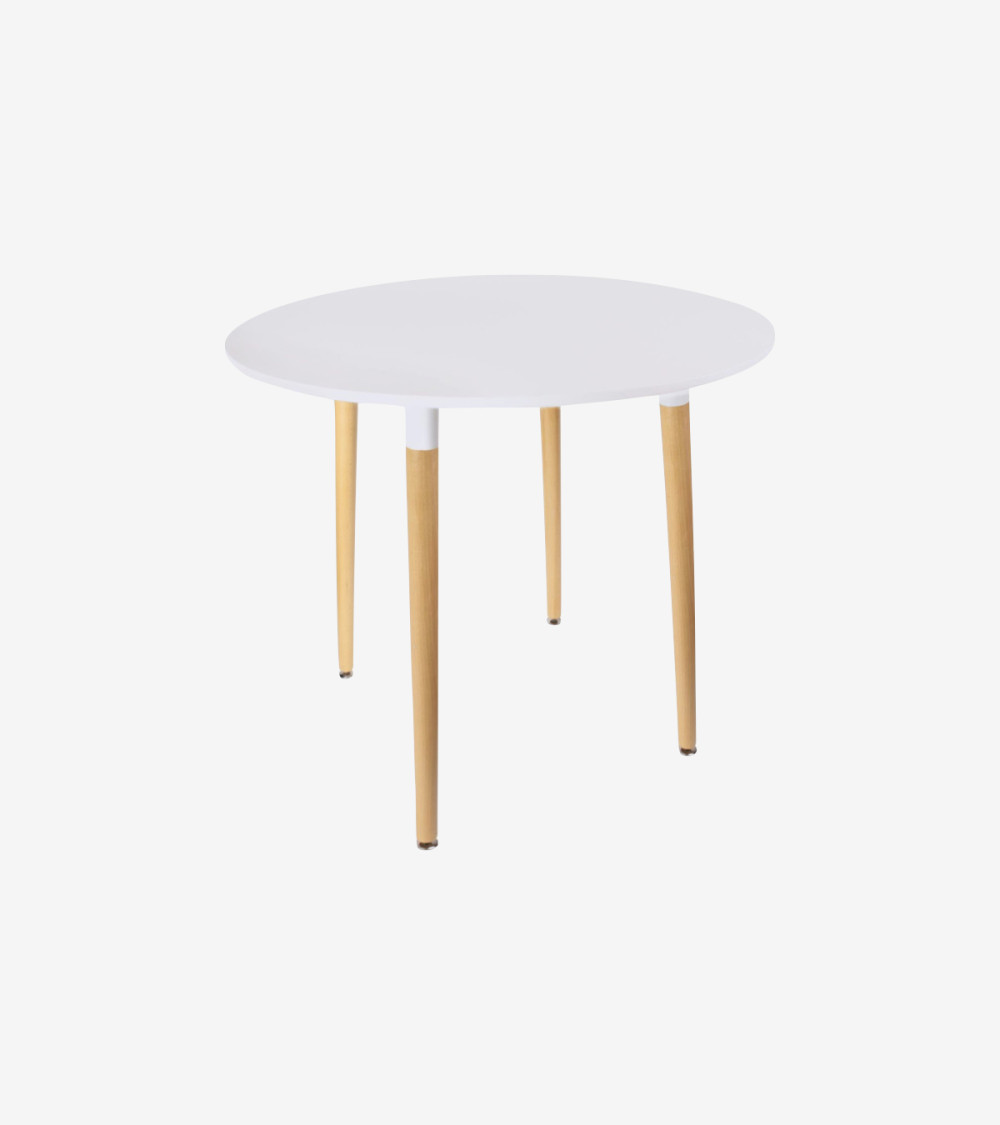 Table à manger ronde en Hêtre — Blanc D. 100 x P. 74 x H.100 cm
