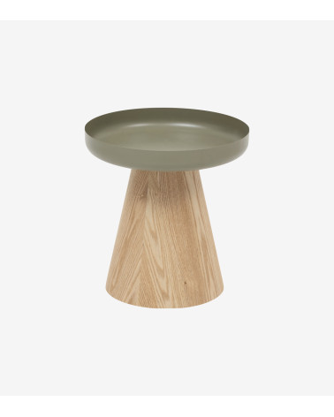 Table d'appoint D 40 cm bois et métal vert de gris