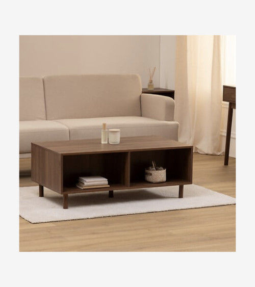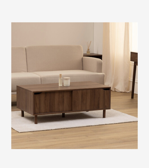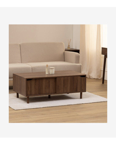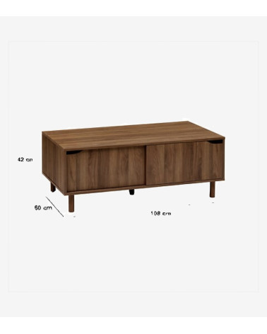 Table basse 2 cases rangement et portes coulissantes L 108 x P 60 x H 42 cm