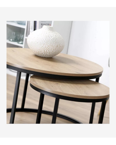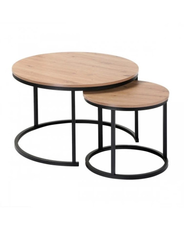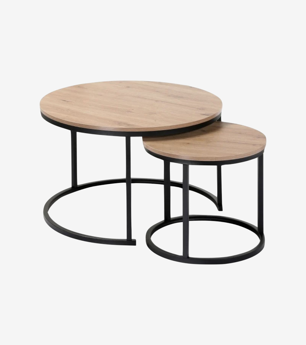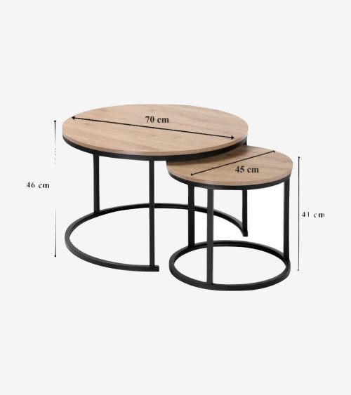 Lot de 2 Tables Basses Gigognes Rondes - L 70 cm