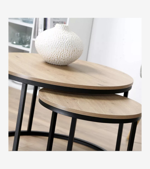 Ces 2 tables basses gigognes sont idéales pour les petits espaces car elles n'encombrent pas l'espace et vous permettront de gagner de la place. Vous pourrez moduler l'utilisation des 2 tables en fonction de vos besoins et de vos envies. Ces tables basses sont très pratiques au quotidien pour manger ou pour travailler. Leur design industriel s'adaptera à tous les styles d'intérieur.