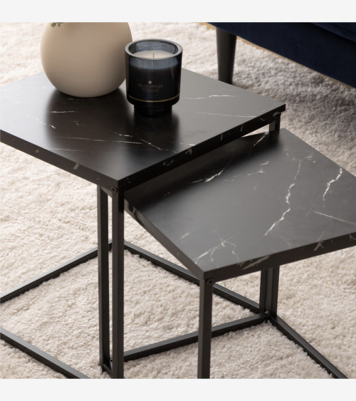 Le lot de 2 tables basses allie élégance et praticité. Les tables possèdent un ravissant plateau avec un effet de marbre noir. Par ailleurs, la plus petite table peut entièrement s'emboiter dans la grande table afin de gagner de la place dans votre salon.