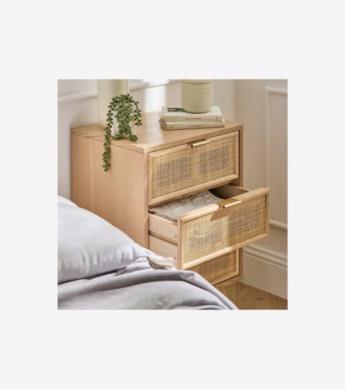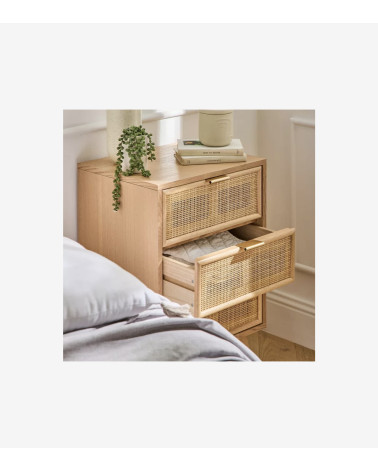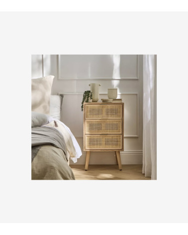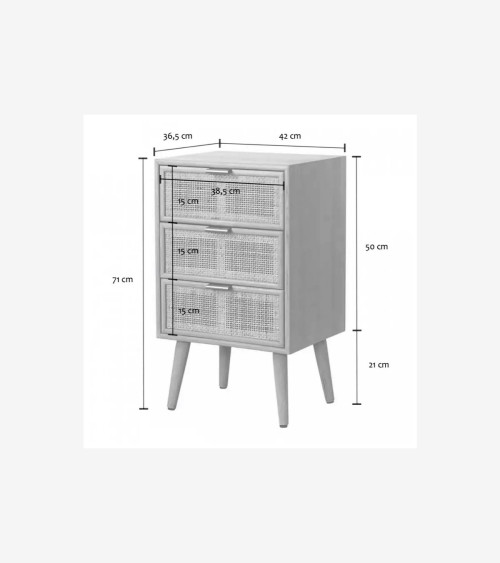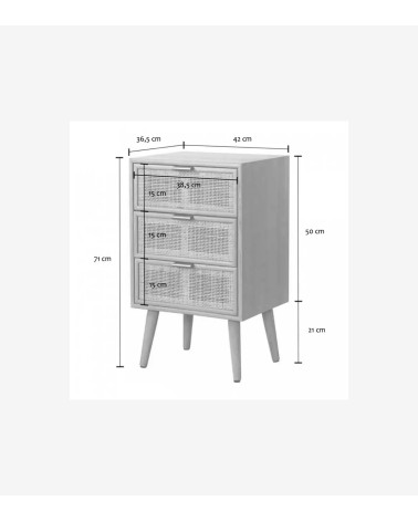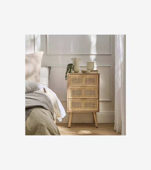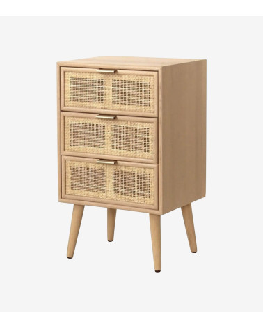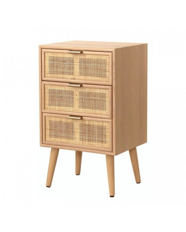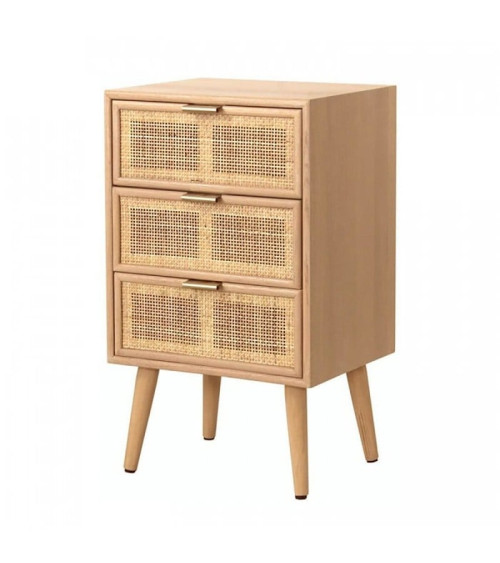 Table de chevet / commode 3 Tiroirs Façade en Cannage Rotin Naturel L 42 x P 36,5 x H71 cm