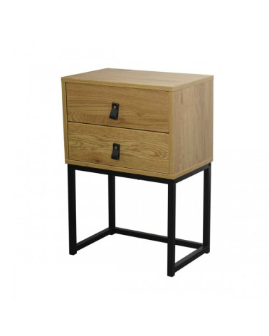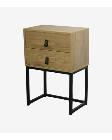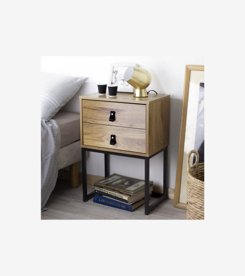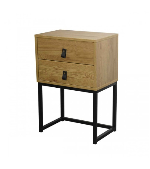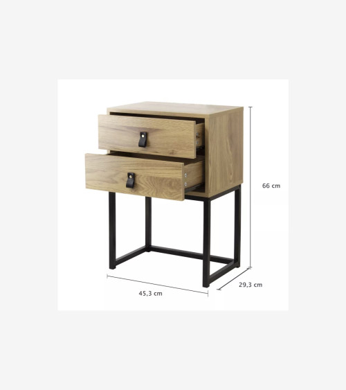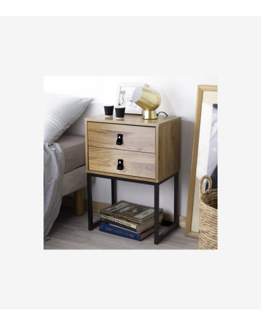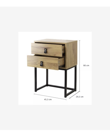 Chevet 2 Tiroirs Pieds Métal Effet Chêne L 45 cm x P 29 cm x H 65.5 cm