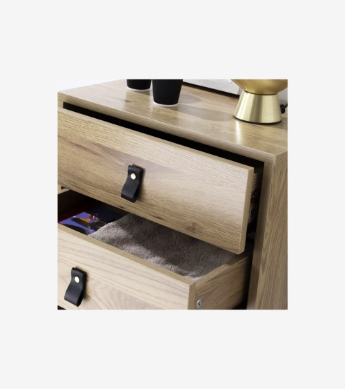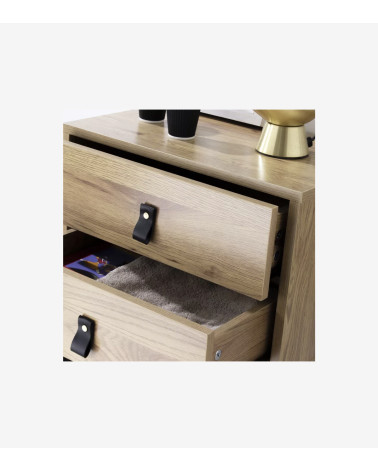 Fonctionnel, le chevet 2 tiroirs pieds métal effet chêne dispose d'un plateau supérieur qui pourra facilement accueillir une lampe de chevet, un livre et un réveil. De plus ses deux tiroirs spacieux vous permettront d'y ranger vos objets du quotidien