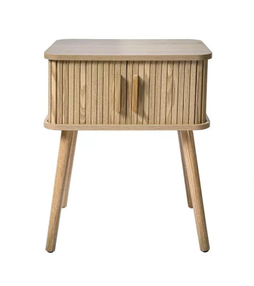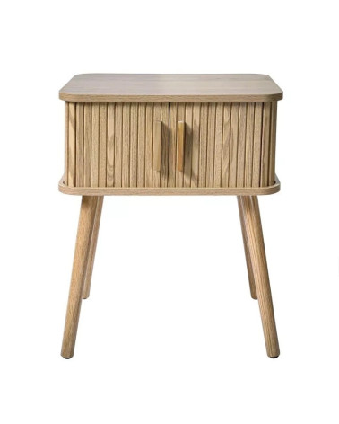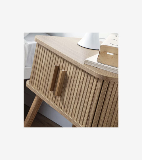Cette table de chevet est un meuble au style vintage, idéal pour ajouter une touche rétro à votre chambre. Conçue en panneaux de particules avec un décor effet chêne, elle est dotée de deux portes coulissantes pratiques pour un rangement optimisé. Les poignées et les quatre pieds sont en bois véritable, recouverts d'un décor chêne, ajoutant une touche d'authenticité et de robustesse.