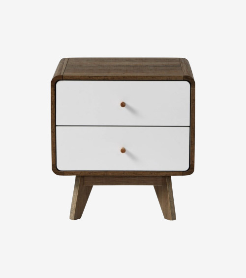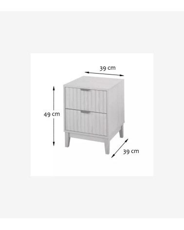 Table de chevet avec 2 tiroirs aux façades effet vague L 40 cm x L 40 cm x H 52 cm