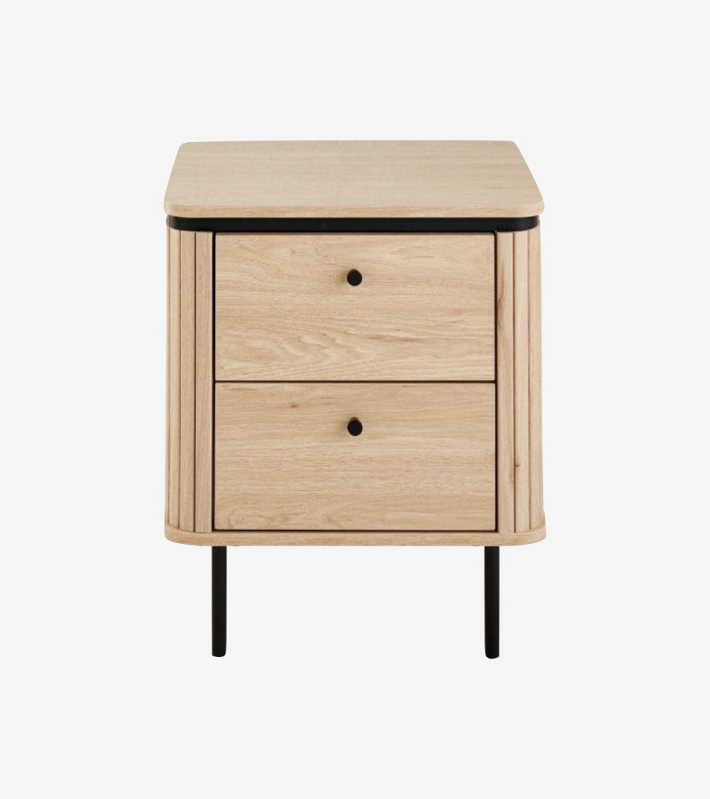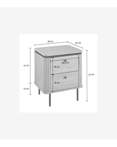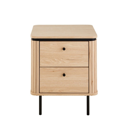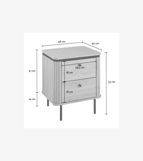 Table de chevet 2 tiroirs avec côtés effet rainuré L 48 x x l 40 x H 55 cm