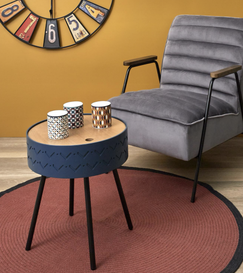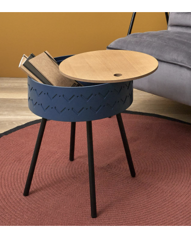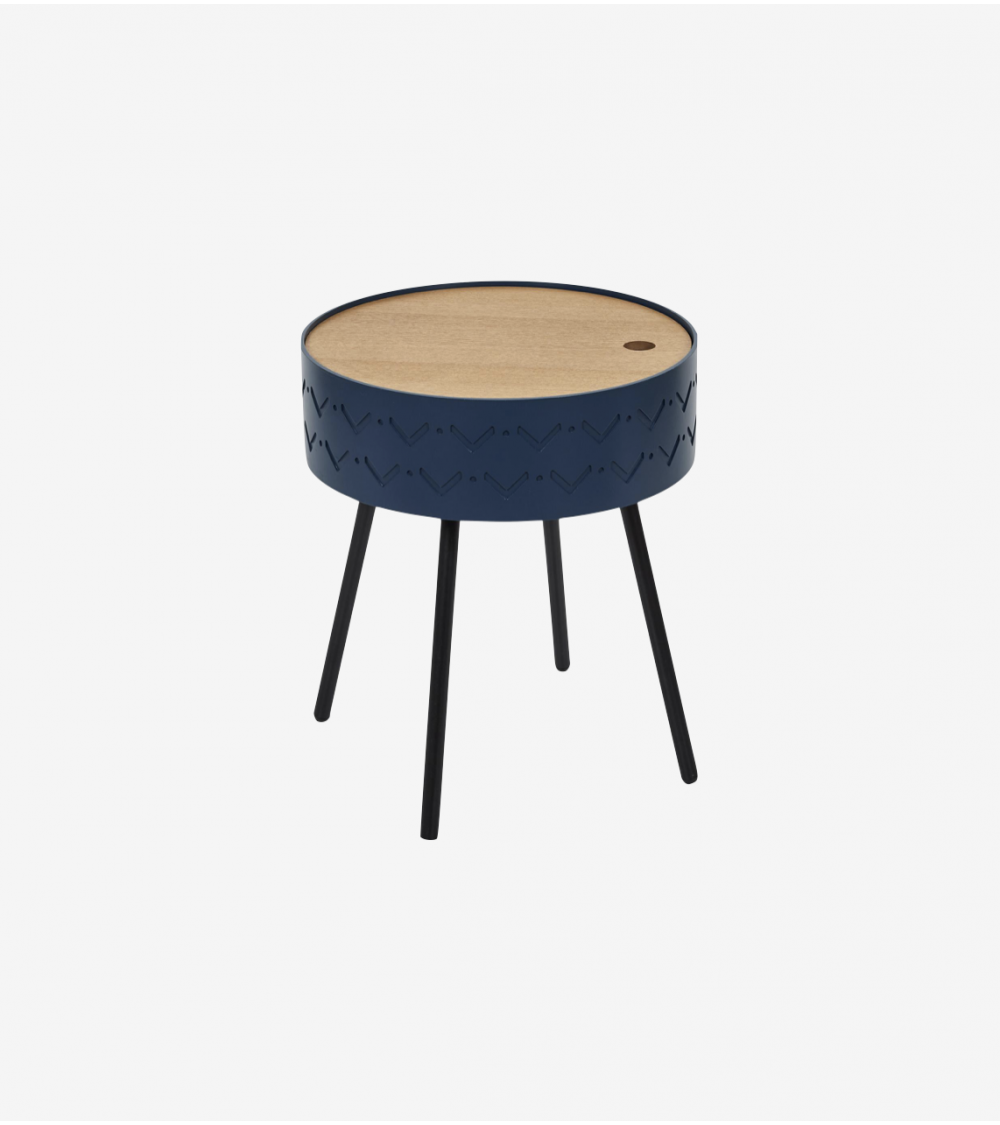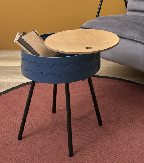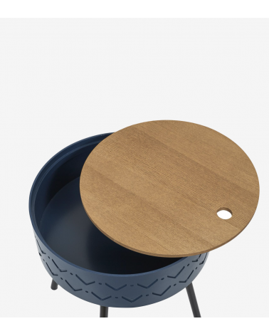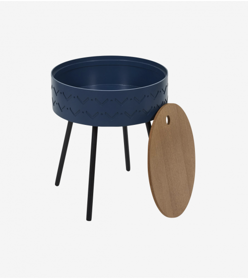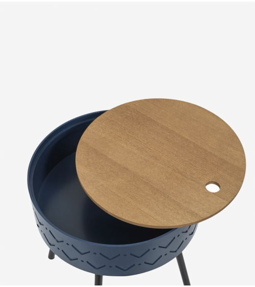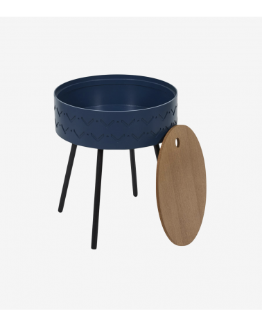 Table d'appoint avec Coffre en Bois de D.38 cm Bleu