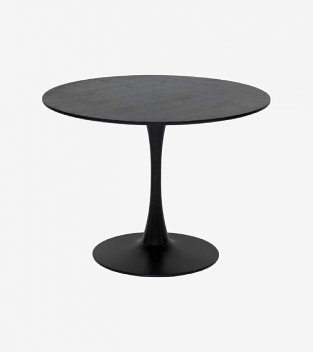 Table à manger - diamètre 100 cm pied métal et plateau en bois (MDF) noir