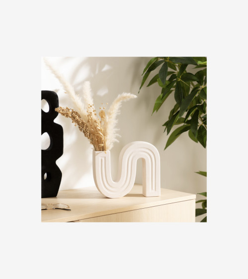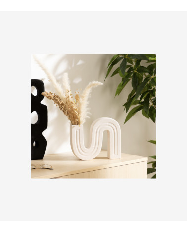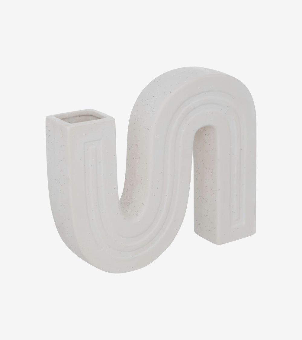 Réalisé en céramique sculptée, au fini texturé, ce soliflore obéit à des courbes originales et vous permettra de placer quelques tiges dans la partie verticale. Sobre et harmonieux, il se mariera volontiers avec du mobilier en bois pour former un ensemble chaleureux et résolument tendance !