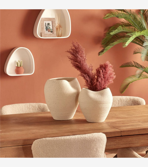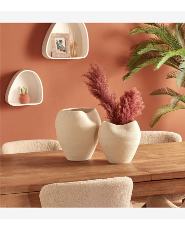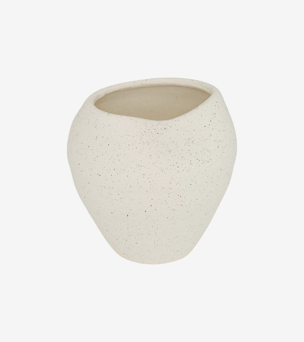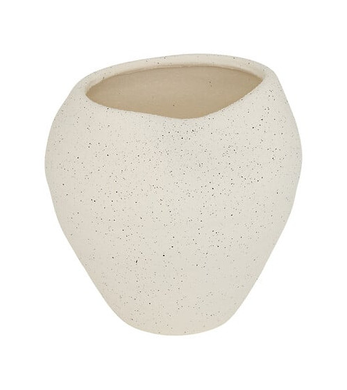 Fabriqué en céramique, ce vase possède une forme organique avec une teinte neutre légèrement mouchetée. Son format moyen vous permettra d'y glisser des bouquets de fleurs fraîches ou séchées.