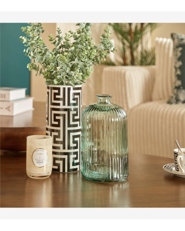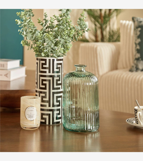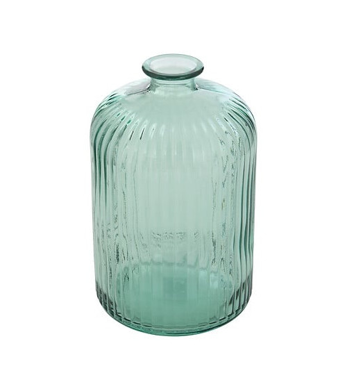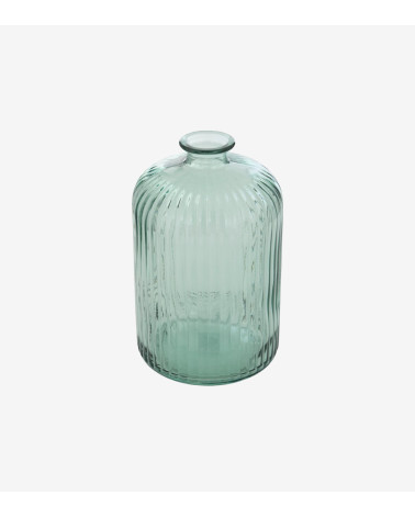 Ce vase cylindrique est réalisé en verre recyclé et finement strié avec une teinte douce. Avec son petit format, il trouvera sa place sur une table basse ou une étagère.